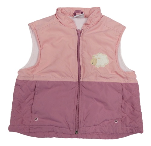 Růžovo-tmavorůžová šusťáková lehce zateplená vesta s ovcí