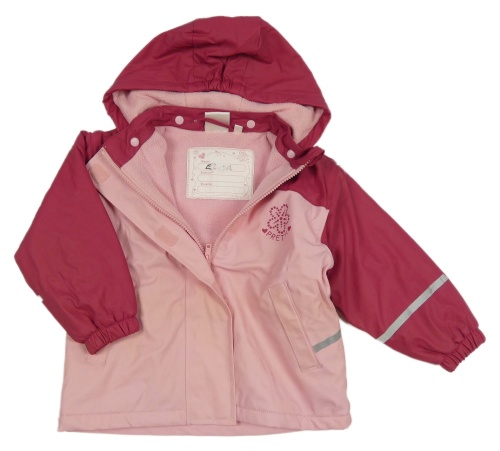 Růžovo-vínová nepromokavá jarní bunda s květem a odepínací kapucí impidimpi