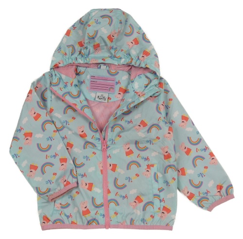 Světlemodrá vzorovaná šusťáková jarní bunda s Peppou a kapucí