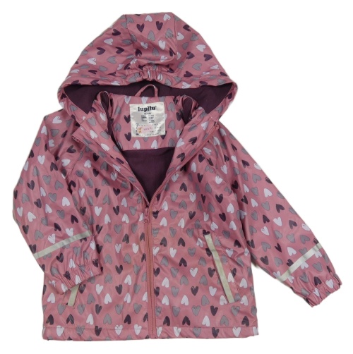 Starorůžová nepromokavá lehce zateplená bunda se srdíčky a kapucí Lupilu
