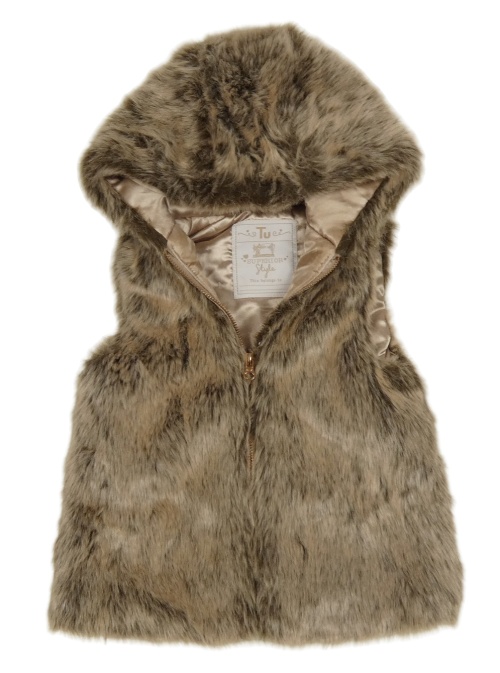 Hnědá kožešinová zateplená vesta s kapucí Tu