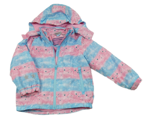 Růžovo-modrá pruhovaná šusťáková lehce zateplená bunda s kapucí Impidimpi