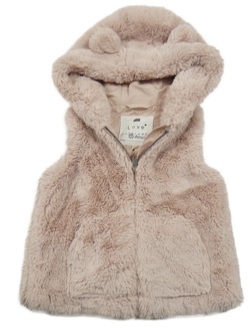 Růžová kožešinová podšitá vesta s kapucí F&F