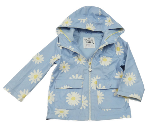 Světlemodrá květovaná nepromokavá jarní bunda s kapucí F&F