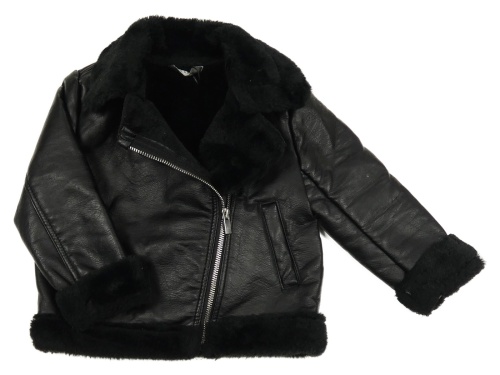 Černý koženkový zateplený křivák s kožešinovým límcem Primark
