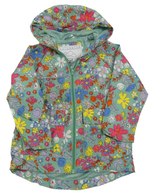Zelená šusťáková jarní bunda s kytičkami a kapucí Primark