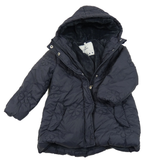 Tmavomodrá květinová šusťáková zimní bunda s kapucí Topolino