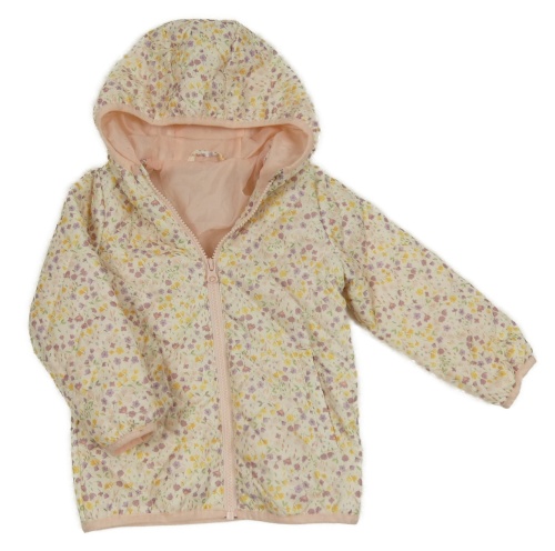 Smetanová prošívaná šusťáková zateplená bunda s kytičkami a kapucí George