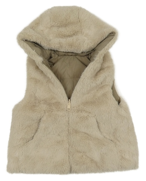 Nové - Světlebéžová kožešinová oboustranná vesta s kapucí Zara