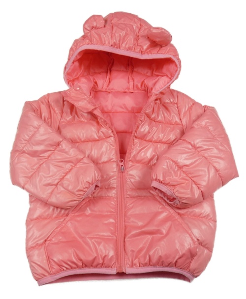 Růžová prošívaná šusťáková zateplená bunda s kapucí s oušky