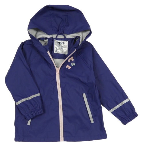 Tmavofialová nepromokavá bunda s motýly a kapucí Lupilu