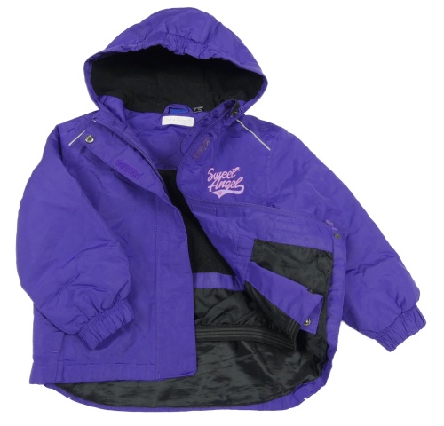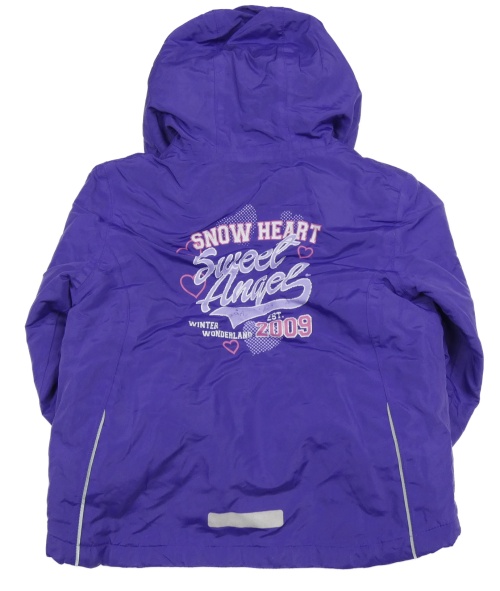 Fialová šusťáková zimní bunda s nápisem a kapucí Lupilu
