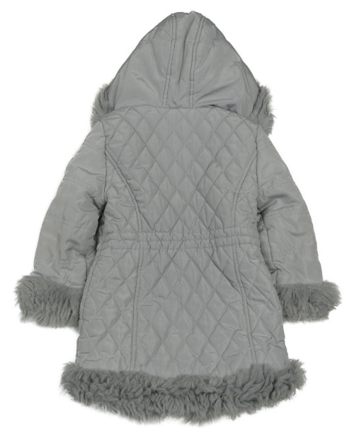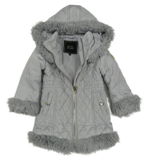 Světlešedý prošívaný šusťákový zateplený kabát s kožešinovými prvky a kapucí River Island