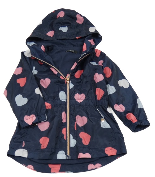 Tmavomodrá šusťáková jarní parka se srdíčky a kapucí