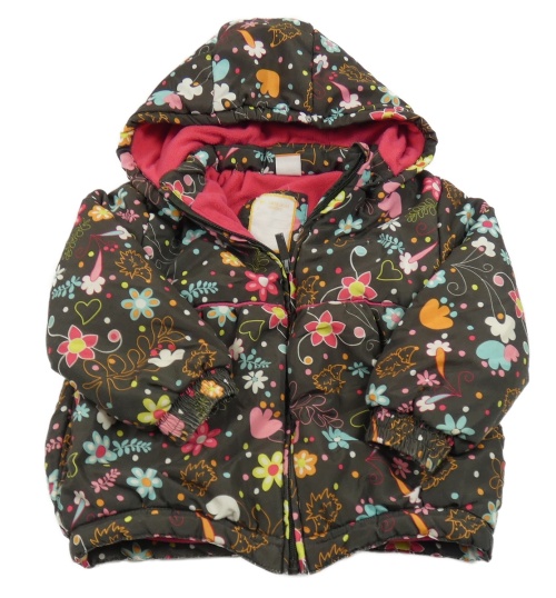 Hnědo-barevná květovaná šusťáková zimní bunda s kapucí