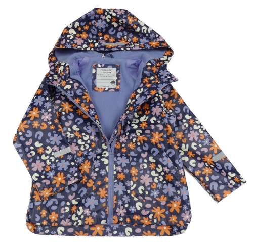 • Fialovo-bílo-oranžová květovaná voděodolná lehce zateplená bunda s leopardím vzorem a kapucí Primark