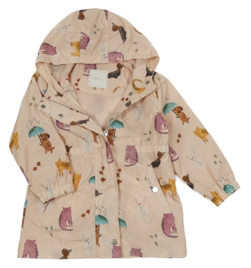 Světlerůžová šusťáková jarní parka se zvířátky a kapucí Next