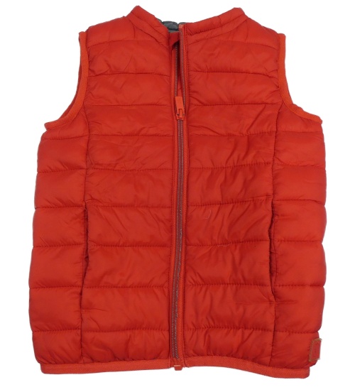 • Červená prošívaná šusťáková zateplená vesta s nášivkou OKaïdi