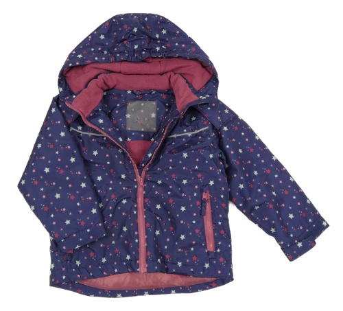 Tmavomodrá šusťáková lyžařská bunda s hvězdami a kapucí Impidimpi