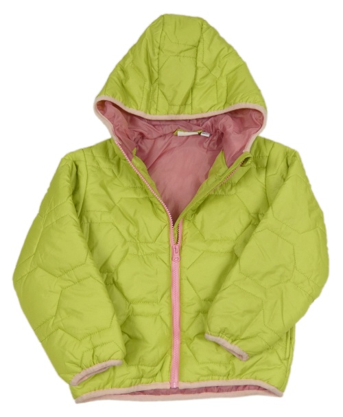 Světlezelená prošívaná šusťáková zateplená bunda s kapucí Kids