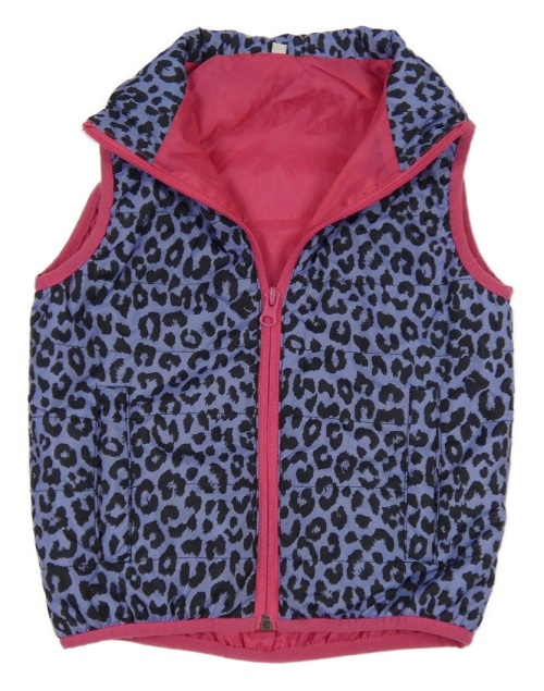 Modrofialovo-černo-tmavorůžová vzorovaná prošívaná šusťáková zateplená vesta