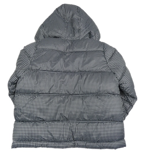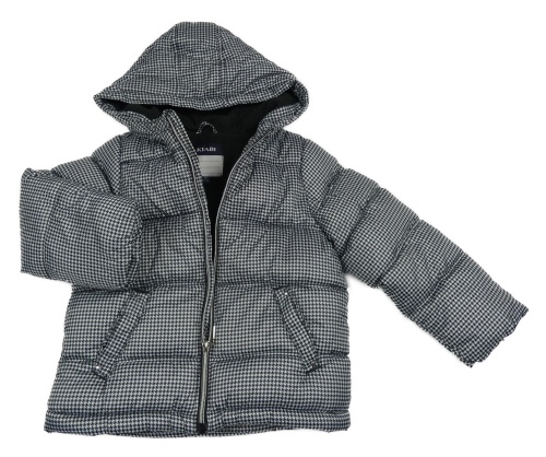 Černo-bílá vzorovaná prošívaná šusťáková zimní bunda s kapucí KIABI