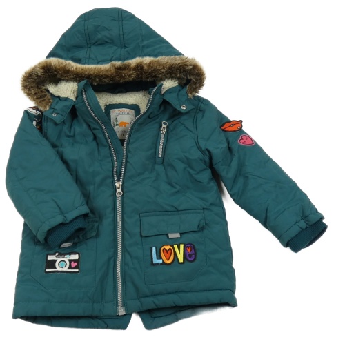 Tmavozelená šusťáková zimní bunda s nášivkami a kapucí LC Waikiki