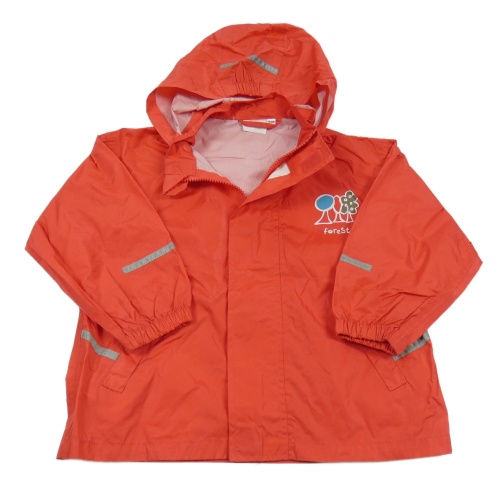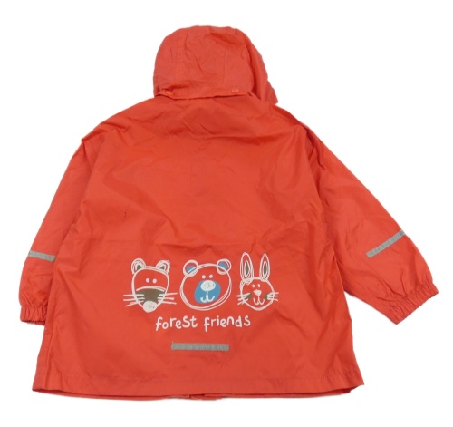 Červená šusťáková nepromokavá bunda s potiskem a kapucí