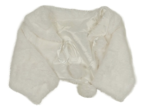 Bílé kožešinové podšité bolérko s bambulemi a límečkem