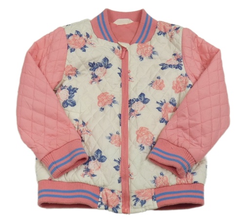 Krémovo-růžová prošívaná šusťáková zateplená bunda s růžemi