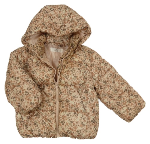 Pudrovo-khaki květovaná šusťáková zimní bunda s kapucí H&M