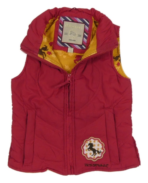 Malinová šusťáková zateplená jezdecká vesta s koněm