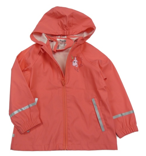 Korálová nepromokavá bunda s jednorožcem a kapucí Lupilu