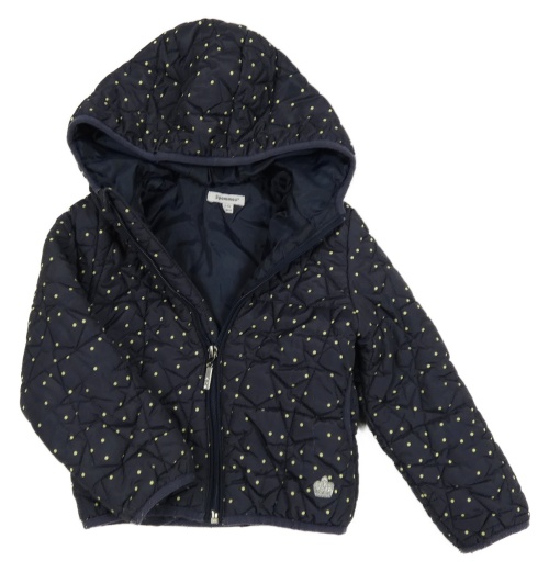 Tmavomodrá puntíkatá šusťáková prošívaná zateplená bunda s kapucí