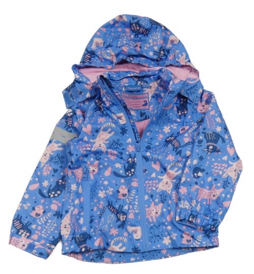 Modro-růžová šusťáková jarní bunda s kočkami a kapucí Impidimpi