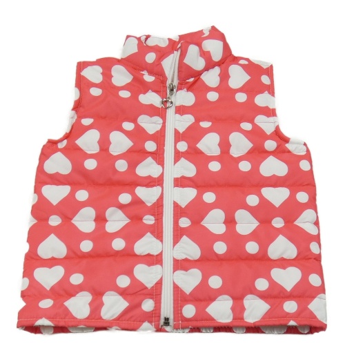Růžovo-bílá šusťáková zateplená vesta se srdíčky
