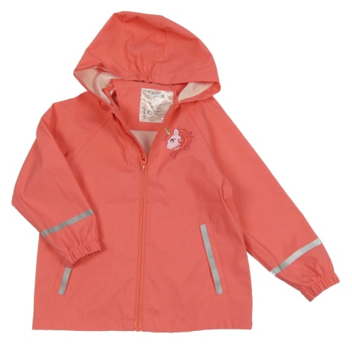 Korálová voděodolná jarní bunda s jednorožcem a kapucí Lupilu