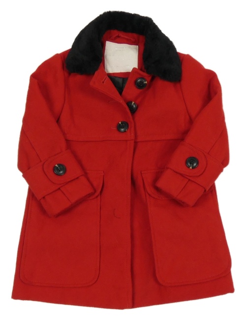 Červeno-černý flaušový podšitý kabát s kožešinovým límcem Matalan