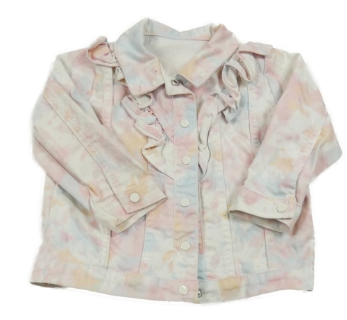 Bílo-barevná pastelová batikovaná riflová bunda s volánky Matalan