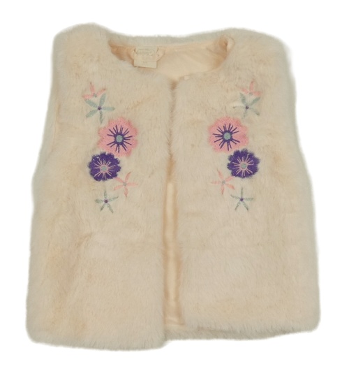 Pudrová kožešinová podšitá vesta s květy