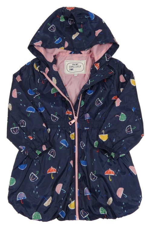 Tmavomodrá šusťáková jarní parka s deštníky a kapucí M&S