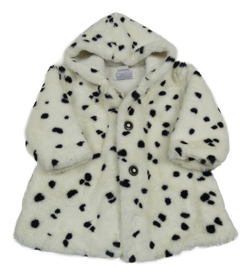 Bílo-černý vzorovaný kožešinový podšitý kabát s kapucí Chrissy