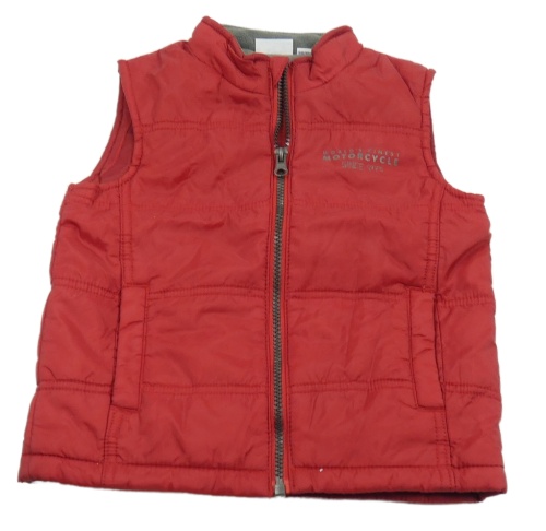 • Červená prošívaná šusťáková zateplená vesta s nápisem impidimpi