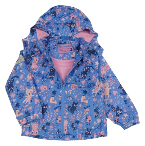 Modrá šusťáková jarní bunda s kočkami a kapucí Impidimpi