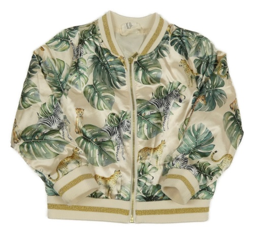 Béžová saténová podšitá bunda s listy a zvířaty H&M