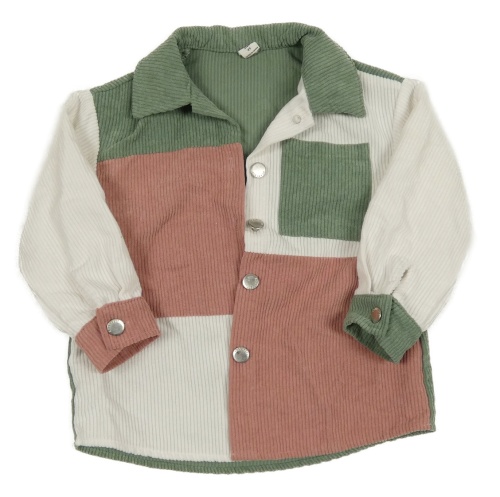 Zeleno-bílo-růžová manšestrová košilová bunda Shein