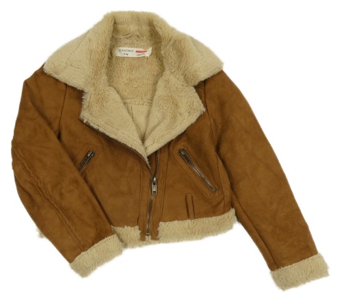 Hnědý semišový zateplený crop křivák s kožešinou CASTRO