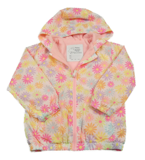 Světlerůžová šusťáková jarní bunda s květy a kapucí Nutmeg
