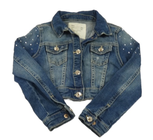 Tmavomodrá crop riflová bunda s kamínky ovs