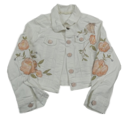 Bílá riflová crop bunda s růžemi a límečkem Joxx Kids